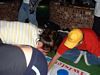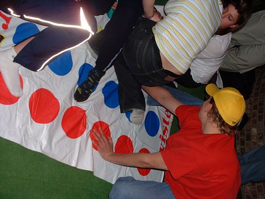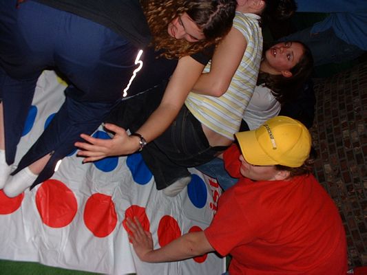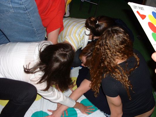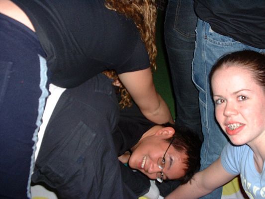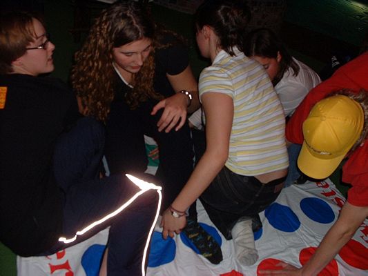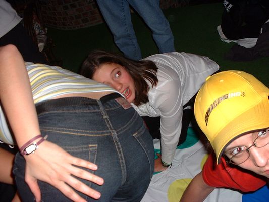 | Whoa. Sean is crying in the corner with his head on a pillow. Lincoln, Heather and Lisa are taken it easy in the game. Elkington is touching her toes. I think that is my head between Lisa's legs. That's an awkward place to have one's head. |